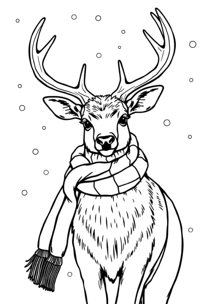 A deer wrapped in knitwear is pure winter magic. Draw a deer with a chunky, knitted scarf, standing in a snowy glade, on a sheet.