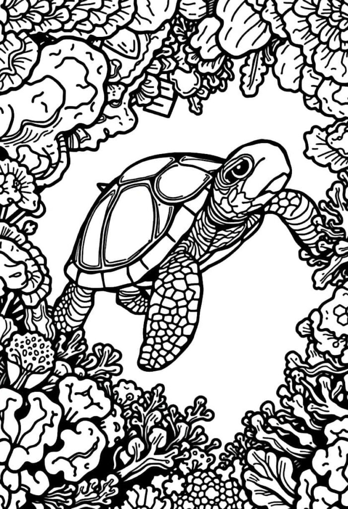 Capture that gentle glide through calm waters, flowing lines and peaceful vibes. Sketch your turtle from a top or angled view as it floats peacefully beneath the surface.