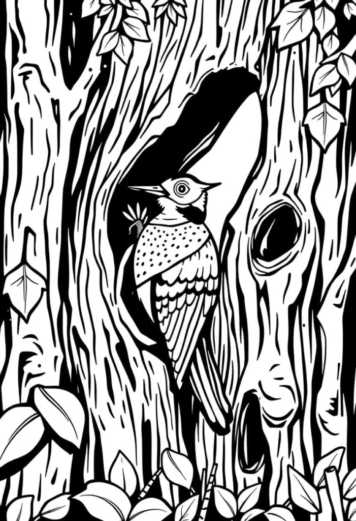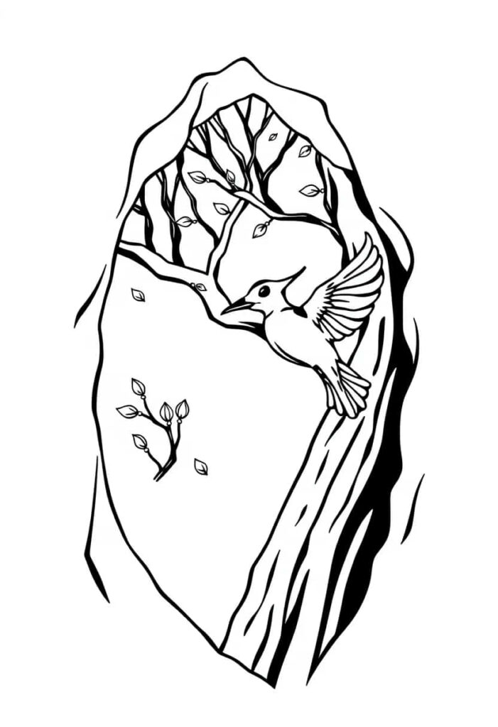 Drawing a fluffy baby woodpecker peeking out of a tree hole is such a wholesome idea. Use soft lines for the chick and gentle shading inside the nest. This makes a wonderful coloring activity for kids and is super satisfying for mindful sketching.